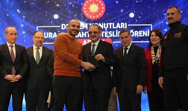 Çevre, Şehircilik ve İklim Değişikliği Bakanı Mehmet Özhaseki, inşaatı tamamlanan deprem konutlarını her ay teslim etmeye devam edeceklerini belirterek, "1,5 yıla kadar hak sahibi tüm vatandaşlarımıza evlerini vermiş olacağız." dedi.ANKARA (İGFA) - 6 Şubat 2023 tarihinde gerçekleşen Kahramanmaraş merkezli depremlerin ardından yapımı kısa sürede tamamlanan ilk 41 bin konut ve 5 bin köy evi, hak sahiplerine teslim edilmeye devam ediyor. Bugün Adana'da Çevre, Şehircilik ve İklim Değişikliği Bakanı Mehmet Özhaseki'nin katılımıyla gerçekleştirilen 'Deprem Konutları Kura ve Anahtar Teslim Töreni'nde, 1.589 kalıcı konut vatandaşlara teslim edildi."75 BİN KONUTUMUZU HAK SAHİPLERİNE TESLİM EDİYORUZ"Törende konuşan Bakan Özhaseki, Kahramanmaraş merkezli depremlerinin ardından Bakanlık olarak hızla inşaatlara başladıklarını söyledi. İnşaatı bitirilen evleri her ay teslim etmeye devam edeceklerini kaydeden Bakan Özhaseki, 1,5 yıla kadar tüm hak sahiplerinin konutlarını vermiş olacaklarını belirtti. Binlerce hak sahibinin birkaç gün içerisinde evlerine kavuştuğunun altını çizen Bakan Özhaseki, "Gururluyuz. Çünkü hiç ara vermeden, ilk günden itibaren gece gündüz demeden çalıştık. Neticesinde, bu bir ay içerisinde 46 binini, önümüzdeki ay vereceklerimizle birlikte 75 bin konutumuzu hak sahiplerine teslim ediyoruz. Toplamda 307 bin konutumuzun inşası hızla devam ediyor. Bir taraftan başlattığımız 'Yerinde Dönüşüm' projemize 256 bin vatandaşımız müracaat etti. İnşallah, herkes evlerine oturuncaya kadar, bütün vatandaşlarımız, 'evet biz hakkımızı aldık. Allah devletimizden razı olsun, size hakkımız helal olsun' deyinceye kadar buralardayız, gitmeyeceğiz ve inşallah çalışarak herkesin hakkını teslim edeceğiz. Hiç endişeniz olmasın." diye konuştu. "GECE GÜNDÜZ DEMEDEN ÇALIŞIYORUZ"Bakan Mehmet Özhaseki, bugün Adana'da 1.589 konutu hak sahiplerine teslim ettiklerini belirterek, "Şu anda ihalesi yapılan veya ihale aşamasında olan 8 bin 138 konutumuz var. İnşallah bunları da en geç bir sene içerisinde bitiririz, hak sahiplerimize dağıtırız. Çok şükür, gece gündüz demeden çalışıyoruz." dedi.Bakan Mehmet Özhaseki, konuşmasının sonunda bir vatandaşın kira yardımlarıyla ilgili sorduğu soru üzerine, ''Evler teslim olana kadar kira yardımlarını sürdüreceğiz.'' dedi. Bakan Özhaseki, daha sonra kurada ismi çıkanlara konutlarının anahtarlarını verdi.Şehit Erkut Akbay Mahallesi Kentsel Dönüşüm Alanını da gezen Bakan Özhaseki, yetkililerden çalışmalar hakkında bilgi aldı.