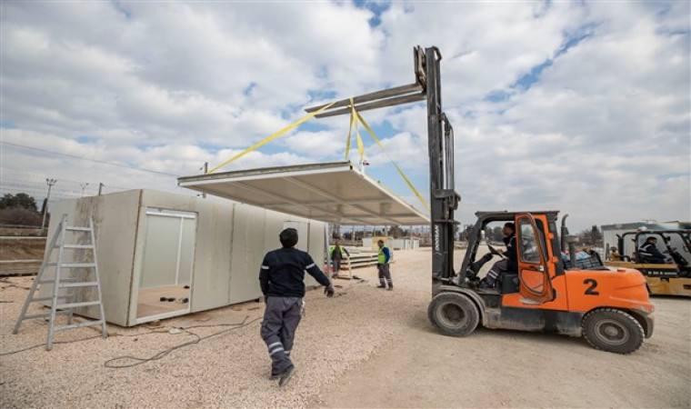 Yer tahsis süreçleri tamamlandıİzmir Büyükşehir Belediyesi’nin Fen İşleri Dairesi Başkanlığı ve ESHOT Genel Müdürlüğü bünyesindeki teknik personel, şehirlerde şantiyeler kurarak konteyner üretimine başladı. Dört ilin valilikleriyle görüşülerek yer tahsis süreçleri tamamlandı. Kurulacak konteyner kentler için projeler hazırlanırken bir yandan da elektrik ve su altyapıları oluşturuldu.Sosyal alanlar da planlandıKonteyner kentlerde sağlık merkezi, çocuk oyun alanları, psiko-sosyal destek birimi gibi birçok sosyal alan oluşturulması planlandı. Eş zamanlı yürütülen çalışmalar sonucunda Hatay’da 500, Adıyaman’da 350, Kahramanmaraş’ta 232 ve Osmaniye’de 200 olmak üzere toplamda bin 282 konutlu konteyner kentin yapımı tamamlanarak depremzedelerin kullanımına açılacak.