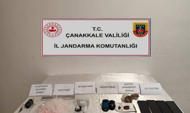 Çanakkale İl Jandarma Komutanlığı ekiplerince, uyuşturucu veya uyarıcı madde ile mücadele kapsamında Çanakkale Cumhuriyet Başsavcılığı koordinesinde 14-21 Ekim tarihleri arasında Bayramiç, Biga, Çan ve Ezine ilçelerinde operasyonlar düzenlendi.Narkotik köpeğinin de katılımıyla yürütülen operasyonlarda yapılan aramalarda; 762 gram sentetik kannabinoid (bonzai), 2 gram satışa hazır fişeklenmiş sentetik kannabinoid, 25 gram sentetik kannabinoid hammaddesi, 10 gram metamfetamin, 150 adet sentetik ecza, 7 adet uyuşturucu kullanma aparatı (payp), 1 adet hassas terazi, 400 ml aseton, 1 adet manuel sigara sarma makinesi, 195 adet kilitli poşet, 1 adet rulo jelatin, 6 adet cep telefonu ve 5 bin 700 TL suç geliri para ele geçirildi.Operasyonlarda 17 şüpheli yakalanarak TCK 188 (Uyuşturucu veya Uyarıcı Madde İmal ve Ticareti) ve TCK 191 (Uyuşturucu veya Uyarıcı Madde Kullanmak) maddeleri kapsamında adli işlem yapıldı.Adli makamlara sevk edilen şüphelilerden 1’i adli kontrol şartıyla serbest bırakılırken, 5’i tutuklanarak Çanakkale Kapalı Ceza İnfaz Kurumu’na gönderildi.