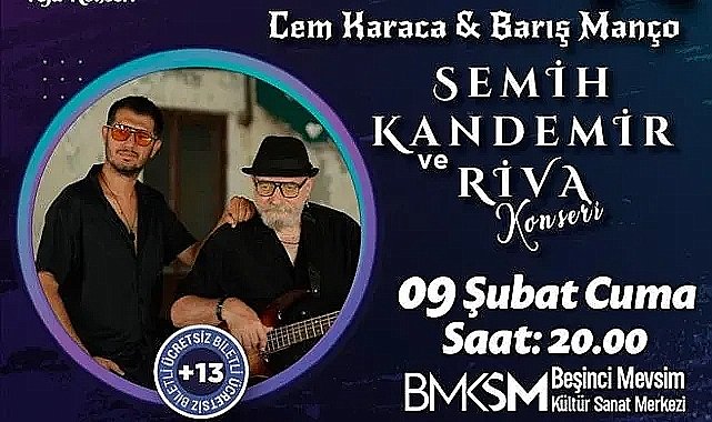 İnegöl Belediyesi, rock müziğin efsaneleri Cem Karaca ve Barış Manço için vefa konseri düzenliyor. 09 Şubat Cuma akşamı Semih Kandemir ve Riva’nın sahne alacağı konser, Beşinci Mevsim Kültür Sanat Merkezinde yapılacak.Şehrin kültür ve sanatına yön veren organizasyonlara imza atan İnegöl Belediyesi, 09 Şubat Cuma akşamı 20.00’da çok özel bir organizasyona ev sahipliği yapacak. İnegöl’de kültür ve sanatın merkezi olan Beşinci Mevsim Kültür Sanat Merkezinde Türkiye’de rock müziğin öncülerinden olan iki efsane Cem Karaca ve Barış Manço için vefa konseri düzenlenecek.ÜCRETSİZ BİLETLER KONSER GÜNÜ DAĞITILACAKİnegöl’ün değerleri Semih Kandemir ve Riva’nın sahne alacağı konser, ücretsiz biletli olarak gerçekleştirilecek. Biletler 09 Şubat Cuma günü 18.00’dan itibaren Beşinci Mevsim Kültür Sanat Merkezinden temin edilebilecek. Belediye Başkanı Alper Taban, tüm ilçe halkını iki efsane adına düzenlenen vefa konserine davet etti. Kaynak: (BYZHA) Beyaz Haber Ajansı
