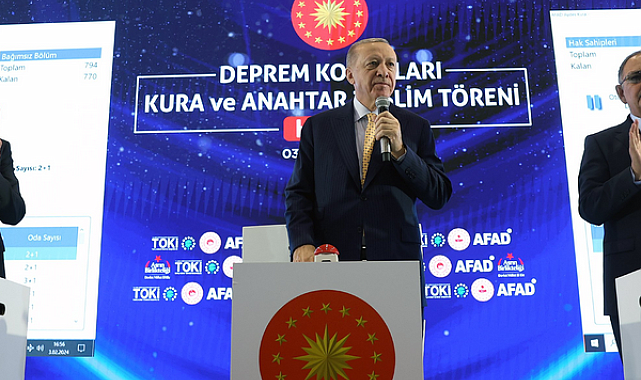 Erdoğan'ın konuşmasından bazı satır başları şöyle:"Bugün Hatay'da gerçekten dolu dolu bir gün geçiriyoruz. İlk olarak inşası tamamlanan deprem konutlarının kura ve anahtar teslim törenine iştirak ettik. Bu törenle şehir merkezlerinde ve kırsalda toplam 7 bin 275 konutu hak sahiplerine teslim ettik.Deprem konutlarının inşası şehrimizin dört bir yanında devam ediyor. Devletimizin tüm kapasitesi adeta deprem bölgesine yığmış durumdayız.Çeşitli sıkıntılarla, meşakkatlerle karşılaşıyor olsak da hedefimizden asla kopmuyoruz. Amacımız mümkün olan en kısa sürede Hatay başta olmak üzere tüm depremzede şehirlerimizi yeniden ayağa kaldırmaktır.Depremin illerimizde ve vatandaşlarımızın gönül dünyasında açtığı yaraları süratle sarmanın derdindeyiz. 6 Şubat'tan bu yana geçen yaklaşık bir yıllık süreçte bu çabamızdan en küçük bir taviz vermedik.14-28 Mayıs seçimleri sürecinde birileri buraları kullanışlı siyasi malzeme olarak görürken biz adeta deprem bölgemizin üzerinde titredik.Hükümeti kurduktan sonra Kabine toplantılarımızın hemen hepsinde Hatay'da ve diğer vilayetlerimizde devam eden çalışmaları değerlendirdik. Bakan arkadaşlarımızdan aldığımız bilgiler doğrultusunda gerekli talimatları vererek inşa ve ihya sürecinin bugünlere gelmesini sağladık. Depremin ilk safhasını nasıl asrın dayanışmasıyla atlatmışsak inşallah içinde bulunduğumuz süreci de asrın birlikteliği ile başarı ile yöneteceğiz.Biz millet olarak tarih boyunca nice badirelere göğüs gerdik. Biz her türlü yokluk ve imkansızlığa rağmen nice destanlar yazdık. Allah'ın izniyle bu meşakkatli dönemin üstesinden de alnımızın hakkıyla hep birlikte geleceğiz.Bundan en küçük şüphe duymuyorum. Türkiye devleti ve milleti ile bunu başarabilecek kapasitesiye fazlasıyla sahiptir. İşte bugün Hatay'daki iki önemli sağlık yatırımını hizmete açmanın bahtiyarlığını yaşıyoruz. Hatay Eğitim ve Araştırma Hastanesi 39'u diyaliz, 68'i acil yatağı olmak üzere toplam 550 yatak kapasitesine sahiptir.Hastanemiz 129 bin metrekare arsa alanı, 65 bin 350 metrekare kapalı alanı ve bir helikopter pisti ile hizmet verecektir. Hastanemizde 12 ameliyathane, 76 poliklinik, 2 anjiyo cihazı, 2 MR cihazı ve 13 röntgen cihazı bulunuyor.Diyaliz ünitesinden yanık merkezine, tam kapsamlı laboratuvardan fizik tedavi ve rehabilitasyon ünitesine, anjiyo ve onkoloji ünitesinden inme ve kalp merkezine pek çok özellikli hizmetin sunulduğu hastanemizin şehrimize hayırlı olmasını diliyorum.Bugün resmen devreye aldığımız ikinci sağlık kuruluşumuz İskenderun Devlet Hastanemizdir. Bu hastanemiz, 31'i yoğun bakım yatağı olmak üzere toplam 200 yatak kapasitesine sahiptir.Arsa alanı 30 bin metrekareyi, kapalı alanı 17 bin metrekareyi bulan İskenderun Devlet Hastanemiz 7 ameliyathane, 47 poliklinik ile ilçemize hizmet verecektir.İleri tıp teknolojilerine ve gelişmiş imkanlara sahip bu hastanemizin de İskenderunlu kardeşlerimizle birlikte tüm Hatay halkına hayırlı uğurlu olmasını temenni ediyorum. Bu sağlık tesislerimizin Hatay'ımıza kazandırılmasında emeği geçen bakanlığımızı, valiliğimizi, yüklenici firmaları, mühendisinden işçisine tüm kardeşlerimi gönülden tebrik ediyorum.Bu güzel hastenelerimizden hizmet alan ve alacak olan vatandaşlarımıza Rabbimden acil şifalar niyaz ediyorum. Hastanelerimizde görev yapan personelinize mevladan kolaylıklar ve başarılar diliyorum.Hükümet olarak Hatay'da ve diğer afetzede illerimizde sadece sahadaki zorluklarla mücadele etmiyoruz. Buradaki çalışanlarımızla atılan her adıma kulp takmak için pusuda bekleyen maalesef kötücül niyete karşı da mücadele ediyoruz.Bu zihniyet yalnızca siyasi meselelerde karşımıza çıkmıyor, deprem gibi 85 milyonun tamamını ilgilendiren bir konuda da karşımıza dikilebiliyor. Depremin açtığı yaraların sarılmasına destek vermek yerine eline geçirdiği her fırsatı eleştirmek için kullananları milletimiz de çok iyi tanımaktadır.14-28 Mayıs seçimleri sürecinde yaşanan utanç verici sahneler insanımızın hafızasında derin izler bırakmıştır.Oy tercihlerinden dolayı akla ziyan hakaretlere uğrayan depremzede kardeşlerimizin yürek acısının akşamdan sabaha kapanmayacağı açıktır. Asrın felaketini yaşamış, 53 binden fazla canını toprağa vermiş millet olarak böyle konuları konuşmamız gerektiğine inanıyorum.Hangi siyasi görüşe, kökene, meşrebe mensup olursak olalım omuz omuza verip, bu zor günlerin üstesinden gelmemiz gerekir. İktidarın eksiği varsa bunu muhalefet tamamlayacak. Belediyenin yetişemediği yerde merkezi hükümet devreye girecektir.85 milyon asrın birlikteliğini sergileyerek şehirlerimizi en kısa sürede ayağa kaldıracağız. Bunu başardığımızda hedeflediğimizden de çok kısa sürede depremin izlerini sileceğimizden şüphe duymuyorum. Buradan şu samimi çağrıyı yapmak isterim. Türkiye'deki muhalefeti deprem konusunda polemik yapmak yerine vicdanlı ve sorumlu davranmaya davet ediyorum."