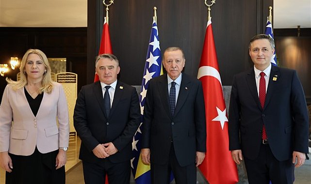 Cumhurbaşkanı Erdoğan, 3. Antalya Diplomasi Forumu için Türkiye'de bulunan Bosna Hersek Devlet Başkanlığı Konseyi üyeleri Denis Becirovic, Zeljko Komsic ve Zeljka Cvijanovic ile bir araya geldi.