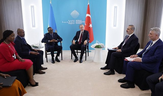 Cumhurbaşkanı Recep Tayyip Erdoğan, Ruanda Cumhurbaşkanı Paul Kagame ile bir araya geldi.BAE (İGFA) - Cumhurbaşkanı Erdoğan, onur konuğu olarak katıldığı "Geleceğin Hükûmetlerini Şekillendirmek" teması altında düzenlenen Dünya Hükûmetler Zirvesi'ndeki ikili temasları kapsamında Ruanda Cumhurbaşkanı Kagame ile görüştü.