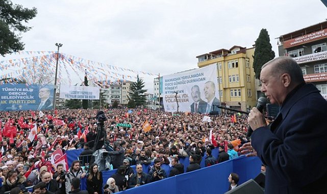Erdoğan'ın konuşmasından bazı satır başları şöyle:"Rabbim'in müstesna bir mücevher gibi Karadeniz'in gerdanına kondurduğu güzeller güzeli Giresun. Milli iradenin ve milli dayanışmanın şehri yiğit Giresun seni bugün birkez daha yürekten selamlıyorum.Buradan sizlerin vasıtasıyla tüm Giresun'a, her bir Giresunlu kardeşime selamlarımı, sevgilerimi gönderiyorum. Maşallah bugün Giresun her zamanki gibi yine çok güzel.Her birinize aşkınız ve muhabbetiniz için teşekkür ediyorum. Sözlerimin hemen başında Giresun'a olan şükran borcumuzu ödemek istiyorum.Giresun, şimdiye kadar girdiğimiz seçimlerde bizi hiç yalnız bırakmadı. Her zaman Türkiye ortalamasının çok üzerinde oy oranlarıyla Giresunlu kardeşlerimiz bize sahip çıktı.14-28 Mayıs seçimlerinde de Giresun yine kendisine yakışanı yaptı. İlk turda yüzde 61 oy oranıyla, ikinci turda yüzde 65'e yaklaşan bir oranla bize destek veren Giresun'a şükranlarımı sunuyorum. Allah hepinizden razı olsun.Bu davaya, bu kardeşinize, Cumhur İttifakı'na sahip çıktığınız için Mevla sizlerden razı olsun. Siz bizimle yol yürüdüğünüz müddetçe Allah'ın izniyle biz de Giresun'a aşkla hizmet etmeyi sürdüreceğiz. Biliyorsunuz önümüzde çok kritik bir seçim daha var.Bundan 45 gün sonra hep birlikte tekrar sandıklara gideceğiz. Bu sefer il, ilçe ve beldelerimizi yönetecek kadroları belirleyeceğiz.Giresun'ndan yine rekor bir oy alacağımızdan şüphe duymuyorum. Giresun'un 31 Mart'ta da sandıkları patlatacağına yürekten inanıyorum. Elbette bunun için her zamankinden daha çok çalışacağız, daha fazla ter dökeceğiz, daha çok koşturacağız.Ülkemizin içinde yer aldığı coğrafya gerçekten sancılı günlerden geçiyor. Karadeniz'in hemen öte yakasında iki komşumuz arasındaki savaş 2'nci yılını doldurmak üzere. Rusya-Ukrayna savaşında şimdiye kadar on binlerce insan öldü, on binlercesi yaralandı, yüz binlerce insan göç etmek zorunda kaldı.Küresel ekonomi, enerji ve gıda fiyatlarındaki aşırı artış sebebiyle çok ciddi sıkıntıyla karşılaştı. Sizler de o günleri çok iyi hatırlıyorsunuz. Doğalgaz fiyatlarının zirveye ulaştığı dönemlerde öyle günler gördük ki kimi Avrupa ülkelerinde lambalar söküldü, kombiler kapatıldı, devlet daireleri çalışanlarına battaniye dağıttı. Ama benim ülkemde doğal gaz aynı şekilde devam etti.Şu anda Karadeniz doğalgazı devam ediyor. Hani olmayacaktı? Bak bizde oluyor. Gabar'dan petrol çıkıyor. Gıda krizinden dolayı dünyanın birçok ülkesinde ciddi sıkıntılar, açlıklar, yokluklar yaşandı.Muhalefet tarafından sürekli bize örnek gösterilen ülkelerin esasında kağıttan birer kaplan olduğu böylece anlaşılmış oldu. Türkiye en zor süreçleri en başarılı yöneten ülkelerden biri.Salgın döneminde üretimden, istihdamdan taviz vermedik. Destek ve hibe programlarımızla toplumumuzun yanında yer aldık. Güçlü ve modern altyapımız sayesinde hiçbir vatandaşımızı çaresiz bırakmadık.Ukrayna-Rusya krizinde ise başkaları gibi ateşe benzin dökmek yerine tüm imkanlarımızla yangını söndürmeye çalıştık. Hatırlarsanız o dönem CHP ve ortakları bizi savaşa sürüklemek için çok uğraştı, çok çaba harcadı.Eksen kayması diye bir şey uydurarak Türkiye'yi birilerinin yanında savaşa dahil etmek için pek çok yol denediler. Savaş çığırtkanlığını en son 14-28 Mayıs seçimlerinde asılsız iddialarla Rusya'yı suçlamaya varacak kadar ileri taşıdılar. Ama biz bunlara kulak asmadık.Muhalefetin savaş tellallığına asla prim vermedik. CHP ve ortakları gibi meselelere batılıların gözünden değil, milletimizin zaviyesinden baktık. Türkiye'nin çıkarları neyi gerektiriyorsa, milletimiz için en iyisi, en doğrusu neyse onu yapmanın gayretinde olduk.Zaman bizi haklı, muhalefeti yine haksız çıkardı. Bugün elimizi vicdanımıza koyup şöyle bir muhasebe yaptığımızda ne kadar basiretli davrandığımızı çok daha iyi anlıyoruz. Tüm kışkırtmalara, tüm kirli senaryolara rağmen Karadeniz'in huzuru bozulmadı.Bölgemizdeki yangının kıvılcımı ülkemize sıçramadı. Giresun'la birlikte Karadeniz'deki tüm illerimizi tedirgin edecek ekonomik ve güvenlik açısından zora sokacak hiçbir hadise yaşanmadı. Ne muhalefetin gazına geldik ne de batılı güçlerin tuzağına düştük.Usta bir satranç oyuncusu gibi yapacağımızı aynen yaptık. Çok iyi planladık ve kararlılıkla hayata geçirdik. Böylece Türkiye'yi çok tehlikeli bir süreçten tek bir vatandaşımızın kılına dahi zarar gelmeden çıkarmayı başardık.Bugün de attığımız her adımı Türkiye eksenli atıyor, milletimizin ve devletimizin menfaatlerini düşünüyoruz. Karadeniz'den Ortadoğu'ya, bölgemiz bir yangın yerine dönmüşken yeni düşmanlıklar, yeni gerilimler olmasın diye çaba harcıyoruz.Çok açık ve net ifade etmek isterim. Bizim dış politikada tek bir amacımız vardır. O da dostlarımızın sayısını mümkün olduğunca çoğaltmaktır. Türkiye Yüzyılı'nın aynı zamanda barışın da yüzyılı olmasını istiyorsak dost ve kardeş ülkelerle iş birliğimizi geliştirmekten başka yolumuz yok.Emperyalist güçlerin bölgemize yönelik oyunlarını bozmak istiyorsak kardeş ülkelerle birbirimize kenetlenmek mecburiyetindeyiz. Görüş ayrılıklarına takılıp kalmak yerine iş birliği alanlarına odaklanmak zorundayız. Şu hakikatin hepimiz farkındayız. Vahdet olmadan rahmet olmaz.Bilhassa Gazze'deki akan kanı durdurmak, İsrail'in katliamlarının önüne geçmek istiyorsak kardeşlerimizle saflarımızı sıklaştırmak gerekiyor. Birleşik Arap Emirlikleri ve Mısır ziyaretimiz bu açıdan çok başarılı geçti. Devlet başkanlarıyla ticaret ve yatırımların yanı sıra Filistin meselesini de görüştük.Her iki ülkeyle de iş birl