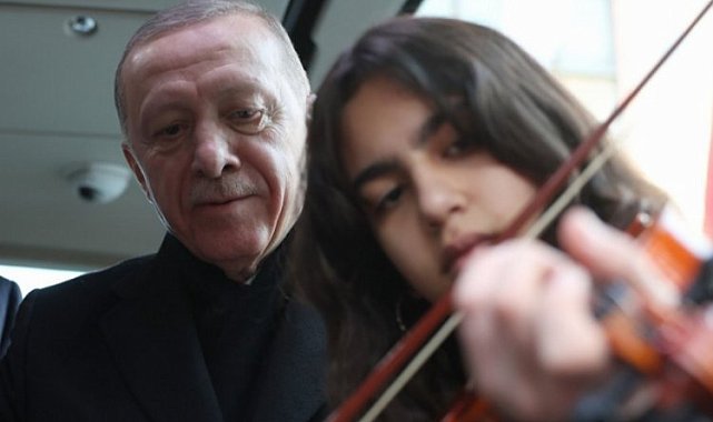 Cumhurbaşkanı Recep Tayyip Erdoğan, Denizli'de, keman çalan öğrenciyle sohbet etti, Çanakkale türküsünü söyledi.DENİZLİ (İGFA) - Cumhurbaşkanı Erdoğan, Denizli'de keman çalan öğrenci ile sohbet etti.Cumhurbaşkanlığı İletişim Başkanı Fahrettin Altun, sosyal medya hesabından yaptığı bir paylaşımla Cumhurbaşkanı Erdoğan'ın Denizli'de keman çalan bir öğrenciyle sohbet ettiği anın görüntülerini aktardı.Cumhurbaşkanı Erdoğan, Denizli programı esnasında, Cumhurbaşkanlığı otobüsünde, keman çalan konservatuar öğrencisiyle sohbet etti, öğrenciden eğitim ve aile durumuna ilişkin bilgi aldı.