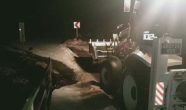 Milas’ta perşembe günü akşam saatlerinde etkili olan dolu yağışı nedeniyle bazı kırsal mahalle yollarının ulaşıma kapanmasının ardından Milas Belediyesi Fen İşleri Müdürlüğü’nce çalışma gerçekleştirildi.Milas’ta perşembe günü akşam saatlerinden itibaren etkili olan dolu yağışı ulaşımda aksamalara neden oldu. Ceviz büyüklüğündeki dolu yağışı nedeniyle Milas-Ören Karayolu hattındaki kırsal mahallelerin bazılarında trafik durma noktasına geldi. Kar yağışını andıran, bazı kesimlerde boyu 40 santimetreye ulaşan dolu birikintisi nedeniyle gelen ihbarlar üzerine harekete geçen Milas Belediyesi Fen İşleri Müdürlüğü ekipleri, Gürceğiz ve Bayır mahalleleri başta olmak üzere kapanan yolları açmak için iş makineleriyle sağanak yağmur altında çalıştı.Öte yandan dolu yağışı ve fırtına dolayısıyla Gürceğiz Mahallesi’ndeki okulun istinat duvarının çöktüğü öğrenildi.Yolları trafiğe açılan mahalleli belediye ekiplerine teşekkür etti. Kaynak: (BYZHA) Beyaz Haber Ajansı