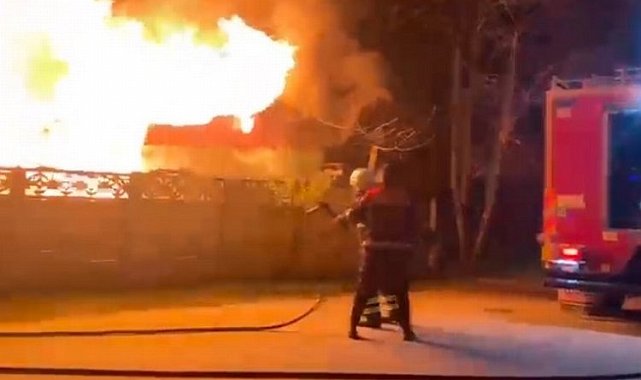 Düzce'ye bağlı Kaynaşlı ilçesinde bir evde çıkan yangında bir kişi yaşamını yitirdi.Sefer DEMİR / DÜZCE (İGFA) - Düzce'nin Kaynaşlı ilçesinde Karaçalı Mahallesi'nde bulunan prafabrik bir evde bilinmeyen bir sebeple yangın çıktı. Alevleri gören çevredeki vatandaşlar durumu 112 Acil Çağrı Merkezi'ne bildirdi. Olay yerine gelen Düzce Belediyesi itfaiye Ekipleri yangına müdahale etti. Uzun süren çalışmaların ardından yangın kontrol altına alınandı ve soğutma çalışması yapıldı. Yangın sonrasında evde yapılan incelemelerde ev sahibi Hacer T.'nin hayatını kaybettiği tespit edildi. Hacer T.'nin cansız bedeni morga kaldırılırken yangınla ilgili inceleme başlatt
