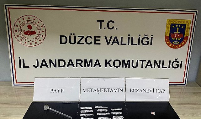 Düzce Cumhuriyet Başsavcılığı'nın talimatı ile İl Jandarma Komutanlığı'nca yapılan operasyonda 1 şahıs tutuklandı.Elif Şevval DEMİR / DÜZCE (İGFA) - Düzce Cumhuriyet Başsavcılığı, uyuşturucu madde imal ve ticareti suçu kapsamında yürüttüğü soruşturma kapsamında İl Jandarma Komutanlığı'nca yapılan ihbarın değerlendirildiğini kaydetti.Alınan bilgiye göre, Düzce Merkez İlçesi Beyköy Jandarma Karakol Komutanlığı sorumluluk bölgesi olan Paşaormanı Köyü'nde yapılan önleyici kolluk devriyesi esnasında ihbara konu E.Y adlı şahsın sürücülüğünü yaptığı 78 ABG 714 plakalı araç durduruld. Araçta yapılan aramada 10 adet folyoya sarılı halde toplamda 11,46 gr Metamfetamin olduğu değerlendirilen madde ele geçirildi.Kişinin ikametinde yapılan aramada ise, ikamette de 1 Adet Payp, 1 Adet Lyrica Hap ve 1 gram metamfetamin olduğu değerlendirilen uyuşturucu maddeye el konuldu.Şüpheli şahıs, jandarmadaki işlemleri sonrasında Düzce Sulh Ceza Hâkimliği'nce tutuklanarak Çilimli Cezaevi'ne gönderildi.