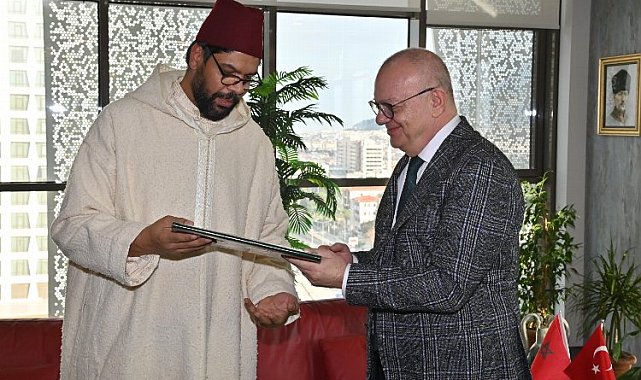 Manisa Büyükşehir Belediye Başkanı Cengiz Ergün, Fas Krallığı İstanbul Başkonsolosu Mehdi Errami'yi makamında konuk etti.MANİSA (İGFA) - Fas Krallığı İstanbul Başkonsolosu Mehdi Errami, Manisa Büyükşehir Belediye Başkanı Cengiz Ergün'ü makamında ziyaret etti.Ziyarette Manisa Büyükşehir Belediye Başkan Danışmanları Nursel Ustamehmetoğlu ve Azmi Açıkdil de yer aldı. Başkan Cengiz Ergün, Başkonsolos Errami'ye Manisa hakkında bilgiler verdi.Manisa'nın tarihi, kültürel ve doğal güzellikleri hakkında bilgiler veren Başkan Ergün, Manisa'nın şehzadelerin yetiştiği önemli bir şehir olduğunun bilgisini verirken, Başkonsolos Errami'ye Manisa Bezi dokumasından özel olarak yapılmış olan kaftan, Manisa'nın önemli tarım ürünleri arasında yer alan zeytin ve zeytinyağı, uluslararası festivale konu olan Mesir Macunu hediye etti. Başkan Ergün, ziyarette yapılan karşılıklı görüşmeler sonunda Fas'ın bir şehri ile kardeş şehir olabileceklerini belirterek bunun için çalışma yapabileceklerini kaydetti.Bu sene 484'üncüsü yapılacak olan Uluslararası Manisa Mesir Macunu Festivali'ne de Errami'yi davet eden Başkan Ergün, kendilerini Manisa'da ağırlamaktan mutlu olacaklarını söyledi.Kendisini kabul ettiği için teşekkürlerini ileten Fas Krallığı İstanbul Başkonsolosu Mehdi Errami, kardeş şehir için aklına hemen 3 şehir geldiğini bununla ilgili hemen çalışmalara başlayacaklarını belirterek, davet edildiği Manisa Mesir Macunu Festivali'ne katılmaktan da onur duyacağını ifade etti. Ziyaret kapsamında Başkonsolos Errami, Manisa Büyükşehir Belediye Başkanı Cengiz Ergün'e özel olarak el yapımı dosya ve yine el yapımı deri evrak çantası hediyelerini takdim etti.