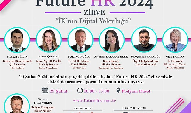 Dünyanın en etkili 100 kadın fütüristi arasındaki tek Türk olan Fütürist Ufuk Tarhan, "Future HR 2024 İnsan Kaynakları Zirvesi" 29 Şubat'ta Bursa'ya geliyor.BURSA (İGFA) - Dijital dönüşüm terimi teknoloji ve yapay zekanın hızla artması ile birlikte hayatımızın her alanına nüfus ediyor. Türkiye'de dijital dönüşüme yatırım yapan şirketler son yıllarda artış göstermesine rağmen yüzde 8 oranlarına bulunurken, dünyanın gelişmiş ülkelerinde yüzde 50'i seviyelerini aştı. Bursa'da insan kaynakları alanında dijital dönüşüme önemli bir yatırım yapan More Payroll'un öncülüğünde önemli bir İK zirvesi hayata geçiyor. Future 2024 İK Dijital Dönüşüm Zirvesi, 29 Şubat'ta Podyum Davet'de gerçekleşecek.Sunuculuğunu başarılı haber spikeri Burak Törün'ün gerçekleştireceği zirvede Gezinomi İK Müdürü Mehmet Bilgin, More Payroll İş Geliştirme Müdürü Gizem Çepnili ile Özgül Belgelendirme Genel Müdürü Dr. Oğuzhan Karagül sunumlarını paylaşacaklar. Dr. Bülent Öz'ün moderatörlüğünü yapacağı panelde ise Çalışma ve Sosyal Güvenlik Bakanlığı Çalışma Genel Müdürü Lütfü İnciroğlu ve Bursa Barosu Bilişim Hukuku Komisyonu Başkanı Av. Hilal Karakaş Eser dijital dönüşüm yasal ve hukuksal süreçleri hakkında bilgi verecek. Futurist Ufuk Tarhan ise zirvenin sonunda sunum gerçekleştirecek.FUTURE HR 2024 29 ŞUBAT'TABursa'nın özel şirketler bazında ilk dijital dönüşüm insan kaynakları zirvesine imza atacaklarını belirten More Payroll CEO'su Dr. Bülent Öz, zirve hakkında bilgiler verdi:"Future HR 2024 zirvesi insan kaynakları süreçlerinin geleceğini bir yaklaşımla hayata geçiriyoruz. İnsan Kaynakları süreçlerine soft ve hard taraflarının yanı sıra iş sağlığı ve iş güvenliği ile idari işler olarak dört temel ana unsurlu bir yaklaşım olarak bakıyoruz. Bu dört temel unsuru daha verimli kılmak adına dijitalleşme süreçlerini önemsiyoruz. Dijitalleşme ile birlikte içeriğinde bulunan devasa ölçekteki datanın izlenebilirliği ve verimliğini sağlamayı hedefliyoruz.DİJİTAL DÖNÜŞÜM AB'DE YÜZDE 50, TÜRKİYE'DE YÜZDE 8"İnsan kaynaklarında dijital dönüşüm son 10 yılda büyük hız kazandı. Dünyanın gelişmiş ülkelerindeki şirketler dijital dönüşüme büyük yatırım yapıyor. Özellikle Avrupa ve Amerika'daki şirketlerin yüzde 50'sinden fazlası insan kaynakları alanında dijital dönüşüme geçti, Türkiye'de ise son yıllarda önemli ölçüde artış olmasına rağmen henüz bu oran yüzde 8 civarında seyretmektedir. Future 2024 İK Zirvesi ile Türkiye'deki şirketlerin dijital dönüşümü ön plana çıkarmaları ve şirketlerinin geleceği adına dijital dönüşüme yatırım yapmalarını hedefliyoruz."