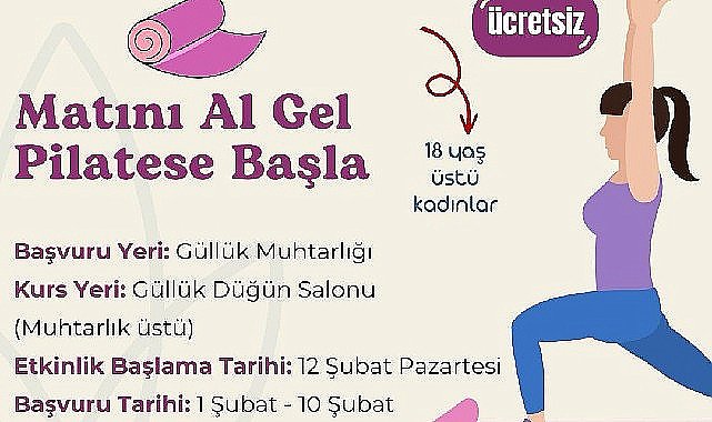 Milas’ın gözde turizm merkezlerinden biri olan Güllük’te, Milas Belediyesi tarafından ücretsiz olarak başlatılacak pilates kursuna başvurular 1 Şubat’ta başlayacak.Milas Belediyesi, kadınların gündelik yaşamın stresinden uzaklaşmalarını sağlamak ve sağlıklı bir yaşam sürdürmelerini sağlamak amacıyla “Matını Al Gel Pilatese Başla” sloganıyla 18 yaş üstü kadınlar için ücretsiz pilates kursu başlatacağını duyurdu.Milas Belediyesi Gençlik ve Spor Hizmetleri Müdürlüğü’nden yapılan bilgilendirmede başvuruların 1 Şubat – 10 Şubat tarihleri arasında Güllük Muhtarlığı’na yapılacağı, Gizem Türkoğlu eğitmenliğinde gerçekleşecek kursların ise 12 Şubat Pazartesi günü Güllük Düğün Salonu’nda başlayacağı belirtildi. Kaynak: (BYZHA) Beyaz Haber Ajansı