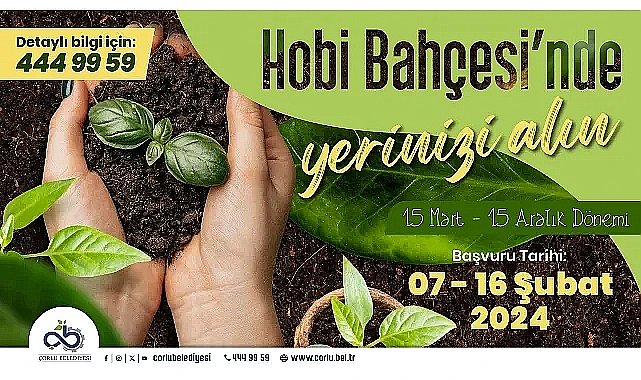 Çorlu Belediyesi tarafından 2020 yılında hizmete sunulan "Hobi Bahçeleri" için ek talep kayıtlarına başlandı. Kayıtlar 07-16 Şubat 2024 tarihleri arasında alınacak.Kent yaşamına küçük bir mola vererek stresten ve kent yaşamının getirdiği yoğunluktan uzak kalmak isteyen vatandaşların büyük ilgi gösterdiği Çorlu Belediyesi Hobi Bahçeleri, 15 Mart – 15 Aralık 2024 tarihlerini kapsayan süre içinde vatandaşlara tahsis edilecek.Daha önce toplanan taleplere istinaden hak kazanan vatandaşlarımızın gerekli sürede evraklarını getirmemesi nedeni ile boş kalan bahçeler için Çorlu Belediye Meclisinin 04.03.2020 tarih 2020/83 sayılı Kararı ile kabul edilen Hobi Bahçeleri İşletme Yönetmeliğine göre ek talepler için 07-16 Şubat 2024 tarihleri arasında başvuru gerçekleştirilecek.Taleplerin toplanmasının ardından Hobi Bahçeleri için İşletme Yönetmeliğinin 6. maddesine istinaden Encümen huzurunda asil ve yedek listenin belirleneceği kura çekimi gerçekleştirilecek ve kura çekimi sonunda 15 Mart – 15 Aralık 2024 tarihlerini kapsayan süre içinde bahçe kullanımı hakkı kazanan vatandaşlar ile iletişime geçilerek bilgilendirme yapılacak.Çorlu’da yaşayan vatandaşlarımızın hizmetine sunulan Hobi Bahçeleri için başvuru formlarına Çorlu Belediyesi internet sitesinden ulaşabilecekler. Hobi Bahçeleri kullanım şartları, idare ve kullanıcı sorumlulukları ekte bulunan işletme yönetmeliğinde tanımlanmış olup detaylı bilgi için Hobi Bahçeleri İşletme Yönetmeliğini inceleyebilir ya da 0 (282) 684 75 44 numaralı telefondan bilgi alabilirsiniz.Kaynak: (BYZHA) Beyaz Haber Ajansı