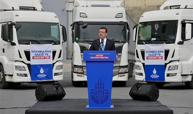 İstanbul Büyükşehir Belediyesi (İBB) Levazım ve Ayniyat Müdürlüğü Merkez Ambarı’ndan malzemeleri yüklenen tırlar, İBB Başkanı Ekrem İmamoğlu’nun katılımıyla yola çıkarıldı.Tırların uğurlanması öncesinde konuşma yapan İmamoğlu, şunları söyledi:“2023 yılı Ekim ayı başından beri Ortadoğu coğrafyasında, ne yazık ki en büyük insani dramlardan birisi Gazze'de yaşanıyor. Gazze'de her gün her dakika bir insanlık suçu işleniyor. Bazı uzmanlara ve hukukçulara göre, İsrail'in yaptığı bu soykırım, tarihe ne yazık ki kötü bir süreç olarak geçmiştir. Hatta Hollanda'nın Lahey şehrindeki Uluslararası Adalet Divanı, Güney Afrika'nın, İsrail'in soykırım yaptığı iddiasıyla açtığı davayı kabul etti.”İmamoğlu, “Türkiye, mazlum milletlerin tarih boyunca her zaman lideri olmuştur, olmak zorundadır” ifadelerini kullanarak,“Savaş ve yıkımlar, sadece yeni savaş ve yıkımlara yol açar. O nedenle bizim hiçbir zaman vazgeçmediğimiz ve vazgeçmeyeceğimiz şiarımız, Atatürk'ün, ‘Yurtta barış, dünyada barış’ anlayışı çok değerli bir ilkedir. Türkiye'de adalet, dünyada adalet. Türkiye'de eşitlik, dünyada eşitlik. Atatürk'ün bütün dünyaya, 100 yıl önce haykırdığı tam da buydu. 1922’de eğer Türkiye'nin giriştiği savaş, yalnız kendisi için olsaydı, daha çabuk biterdi” dedi.“İstanbul'da üniversite okuyan 334 öğrenciye burs desteği verdik”“Atatürk'ün mücadelesi, tüm mazlumların mücadelesiydi” diyen İmamoğlu, “Biz, her zaman masum ve mazlum Filistin halkının yanında olduk. Olmaya da devam edeceğiz. İnsani yardımlara ilaveten, savaş mağduru ailelerine ulaşamayan, İstanbul'da üniversite eğitimlerini sürdüren 500’e yakın Filistinli öğrencinin burs almasını sağladık. Ve 334 öğrenciye, tek seferlik 7 bin 500 lira burs desteği verdik” diye konuştu.İmamoğlu yaptğımız yardım değil, dayanışmadır diyerek sözlerini şöyle noktaladı:“İnsanlık görevidir. Zulüm bitene, barış hakim olana kadar, bu görevimizi yerine getirmeye devam edeceğiz. Burada, bu saldırıdan sıkıntıya düşmüş, ailesine ulaşamayan sevgili gençlerimizin, varsa başka ailelerin de yanlarında olmaya devam edeceğiz. Bu, görevimizdir. İstanbul halkı adına, 16 milyon insanımız ve vatandaşımız adına, görevimizi milletçe görevimizi yerine getiriyoruz. Allah yardımcıları olsun.”