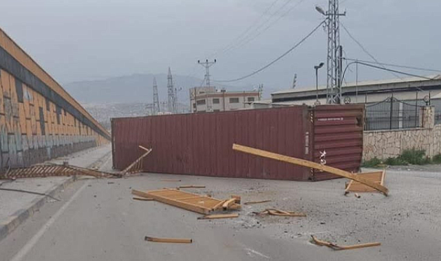Edinilen bilgiye göre, öğle saatlerinde İskenderun’un Akçay bölgesinde etkili olan kuvvetli rüzgar nedeniyle Akçay otoyol köprüsü üzerinde seyir halindeki bir tırın üzerindeki konteyner yerinden oynadı.Zemine düşen konteynerin demir korkulukları kırarak köprüden aşağı savrulduğu bildirildi.Olayın ardından yol bir süre trafiğe kapatılırken, bölgeye İskenderun İlçe Emniyet Müdürlüğü trafik ekipleri sevk edildi. Ekipler, ikinci bir kazanın yaşanmaması için çevrede güvenlik önlemi aldı.İskenderun İlçe Emniyet Müdürü Nevzat Güneş’in de olay yerine gelerek incelemelerde bulunduğu ve ekiplerden bilgi aldığı öğrenildi.