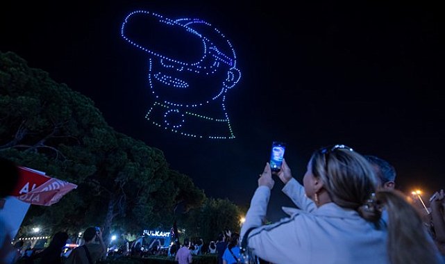 İzmir Enternasyonal Fuarı, ‘Zamanın Ötesine Geçiyoruz’ sloganıyla kapılarını 93’üncü kez ziyaretçilerine açtı. İEF’in temasına uygun gösteri ve etkinliklerin yer aldığı fuar, katılımcılara farklı deneyimler de sunuyor.Kaskatlı Havuz üzerinde yapılan gösteride dronlar tarafından İzmir Enternasyonel Fuarı’nın uluslararası olmasına dikkat çeken “dünya küresi” şekli oluşturulurken. 93. İzmir Enternasyonel Fuarı, İzmir Büyükşehir Belediyesi yazıları yer aldı. Türk Bayrağı görseli ise büyük alkış aldı. Ziyaretçiler cep telefonları ile o anları ölümsüzleştirmek için kayıt yaptı.