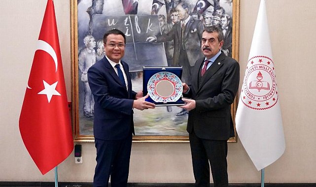 Millî Eğitim Bakanı Yusuf Tekin, nezaket ziyaretinde bulunmak üzere gelen Kamboçya'nın Ankara Büyükelçisi Chea Sok'u kabul etti.ANKARA (İGFA) - Milli Eğitim Bakanlığı'nda gerçekleşen görüşmede Türkiye ile Kamboçya arasında eğitim iş birliği konuları ele alındı.Millî Eğitim Bakanı Yusuf Tekin, iki ülke arasında eğitim alanında 2018 yılında iş birliği anlaşması imzalandığını anımsatarak, eğitim ilişkilerini daha da geliştirmeyi arzu ettiklerini kaydetti. Büyükelçi Chea Sok ise, Türkiye'nin eğitim konusundaki tecrübelerinden faydalanmak istediklerini vurgulayarak iş birliği konularını geliştirmek için her türlü çabayı göstermek istediklerini söyledi. Bakanlığın resmi internet sitesinde de yer alan ziyaret sonunda Büyükelçi Sok, kendilerini kabul ettiği için Bakan Tekin'e teşekkür ederken Bakan Tekin de ziyaretten ötürü memnuniyetini ifade etti.