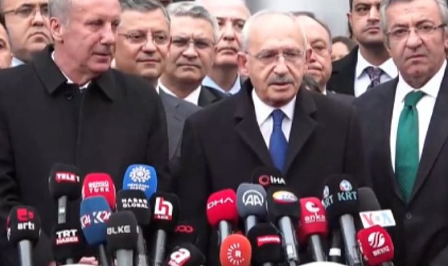 CHP Genel Başkanı ve Millet İttifakı Cumhurbaşkanı adayı Kemal Kılıçdaroğlu, Memleket Partisi Genel Başkanı ve Cumhurbaşkanı adayı Muharrem İnce'yi partisini genel merkezinde ziyaret etti.ANKARA (İGFA) - CHP Genel Başkanı ve Millet İttifakı Cumhurbaşkanı adayı Kemal Kılıçdaroğlu, Memleket Partisi Genel Başkanı Muharrem İnce'ye yaptığı ziyarette, "Halil İbrahim sofrasını büyütmeye çalışıyoruz" dedi.Görüşme sonrası iki lider, ortak basın açıklaması yaptı.Kılıçdaroğlu, deprem bölgesine yönelik kanun teklifi hazırladıklarını belirterek, "Sayın Genel Başkan'a ayrıntılı bilgi verdim. Önümüzdeki günlerde teklifi sunacağız. İşin özeti Halil İbrahim sofrasını büyütmeye çalışıyoruz" dedi. Kılıçdaroğlu, "Yaşadığımız sorunlar Türkiye'nin sorunları, bireysel değil. Çözümler üretmek bizim görevimiz" dedi."Bizler Memleket Partisi olarak diyoruz ki, ittifaklar olmalıdır fakat bu ittifaklar menfaat ittifakları olmamalı ilke ittifakları olmalıdır" diyn Muharrem İnce ise, "Bizim ilkelerimiz nettir. Atatürk'ü tartıştırmayız. Teröre karşı mesafeliyiz. Kadın hakları konusunda çok kararlıyız, geri adım atmayız. Mültecilerin gönderilmesi konusunda çok kararlıyız. Bizim ilkelerimiz bunlar. Bunlardan asla taviz vermeyiz. İlkeler etrafında bu memlekti ayağa kaldırmalıyız. Bu Erdoğan gitmelidir, yorgundur, ortak aklı temsil etmez, kibirlidir; akla, hukuka, bilime inanmamaktadır. Bu konuda da her tür görüşümüzü açık ifade ediyoruz" diye konuştu.https://twitter.com/vekilince/status/1641093645573996545Bu arada İnce'nin Kılıçdaroğlu'nu uğurlama şekli dikkati çekti. Kılıçdaroğlu'nun "Hoşça kalın" sözleri üzerine İnce, "Ayağınıza sağlık. Hoş geldiniz, güle güle" cevabını verdi.
