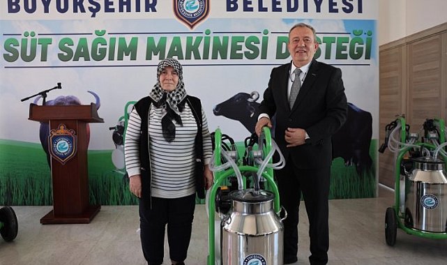 Eskişehir Büyükşehir Belediyesi'nin kırsal kalkınma projeleri kapsamında İnönü ilçesi ve mahallelerinde faaliyet gösteren manda yetiştiricilerine süt sağım makinesi desteği verildi.ESKİŞEHİR (İGFA) - Eskişehir Büyükşehir Belediye Başkanı Prof. Dr. Yılmaz Büyükerşen'in tarım ve hayvancılıkta kırsal kalkınmaya önceleyen projelerine bir yenisi daha eklendi.Bu kapsamda İnönü ilçesi ve mahallelerinde faaliyet gösteren ve Büyükşehir Belediyesi Tarımsal Hizmetler Dairesi Başkanlığı'na destek talebinden bulunan 12'si kadın 41 manda yetiştiricisine, birer adet süt sağım makinesi desteği sağlandı.İnönü'de düzenlenen makine teslim törenine Eskişehir Büyükşehir Belediyesi Başkan Vekili Hasan Ünal, Büyükşehir Belediyesi Genel Sekreter Vekili M. Recai Erdir, Tepebaşı Belediye Başkanı Ahmet Ataç, CHP Eskişehir Büyükşehir Belediye Başkan Adayı Av. Ayşe Ünlüce, CHP İl Başkanı Talat Yalaz, CHP İnönü Belediye Başkan Adayı Balkan Aktaş, belediye bürokratları, muhtarlar ile çiftçiler ve hayvan yetiştiricileri katıldı.Törende konuşan Büyükşehir Belediyesi Başkan Vekili Hasan Ünal, "Eskişehir Büyükşehir Belediyesi olarak uzun yıllardan beri kırsalda tarım ve hayvancılığın yeniden eski günlerine dönmesi için kaynaklarımız ölçüsünde destek olmaya çalışıyoruz. İnönü'de yeniden manda yetiştiriciliğinin yaygınlaştırılması kapsamında yapmış olduğumuz canlı hayvan desteğinin ardından şimdide üreticilerimize büyük kolaylık sağlayacak yeni bir destek için buradayız. Manda sütünden üretilen ürünlerin hem kalitesini hem de hijyenini korumak amacıyla Büyükşehir Belediyesi olarak Süt Sağım Makinesi Desteği projesini başlatıyoruz. Proje kapsamında 12'si kadın 41 manda üreticimize birer adet süt sağım makinesi veriyoruz. Üreticilerimize hayırlı, uğurlu olsun. Bu projenin İnönü'nün manda sütünden üretilen ürünlerle markalaşmasına büyük katkı sunacağını düşünüyor, üreticilerimize bereketli kazançlar diliyorum. Emeğiyle, alın teriyle ekmeğini kazanan çiftçimizin, hayvan yetiştiricimizin her zaman yanlarındayız. Tekrar hayırlı olsun." dedi.Konuşmaların ardından Eskişehir Damızlık Manda Yetiştiricileri Birliği tarafından üreticiye sağlanan destekler nedeniyle verilen teşekkür plaketini Büyükşehir Belediye Başkanı Yılmaz Büyükerşen adına Başkan Vekili Hasan Ünal aldı.Tören, makinelerin üreticilere teslimi ve çektirilen fotoğrafla tamamlandı.