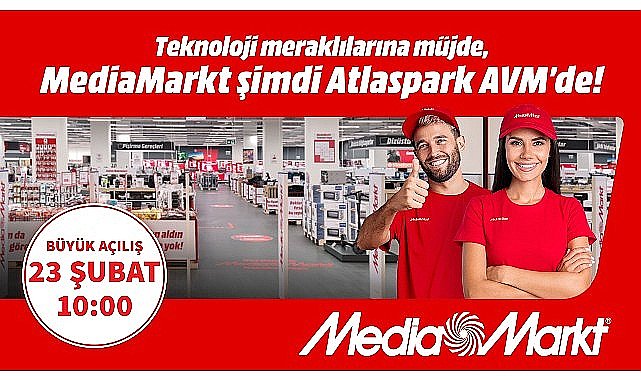 Avrupa’nın açık ara bir numaralı elektronik perakendecisi MediaMarkt, tüketicileriyle yeni mağazalarda buluşmaya devam ediyor. İstanbul’daki 29. mağazasını Atlaspark AVM’de 23 Şubat tarihinde açacak olan MediaMarkt, açılışa özel kampanyalar da gerçekleştirecek.Geniş ürün yelpazesiyle teknolojiseverlere konforlu alışveriş keyfi sunan MediaMarkt, İstanbul Sultanbeyli Atlaspark AVM’de 1.184 metrekarelik yeni mağazasının açılışını 23 Şubat Cuma günü gerçekleştirecek. Kadın istihdamını artırma taahhüdünü sürdüren MediaMarkt’ın Atlaspark AVM’deki mağazasında görev alacak olan 29 personelin yüzde 44’ünü kadınlar oluşturuyor. On binlerce elektronik ürünün sergileneceği yepyeni mağazada, akıllı telefonlardan hoparlör ve kulaklıklara, akıllı bileklik ve saatlerden bilgisayar ve tabletlere, elektrikli ev aletlerinden beyaz eşya, televizyon, ses sistemleri ve oyun konsollarına kadar birçok kategoriden ürün, tüketicilerle buluşmaya hazırlanıyor.MediaMarkt Türkiye, İstanbul Sultanbeyli Atlaspark AVM’deki mağazasının açılışına özel çeşitli kategorilerde, 2 gün sürecek bir açılış kampanyası da gerçekleştirecek. 23-24 Şubat tarihlerinde geçerli olacak açılış fırsatları kapsamında;Apple MacBook Air M1 Dizüstü Bilgisayar 26.999 TL’den Apple iPhone 13 128GB Akıllı Telefon 36.499 TL’den Apple AirPods 2. Nesil Kablosuz Kulaklık 3.499 TL’den Apple iPad 9. Nesil 64GB Tablet 9.999 TL’den Samsung UE55CU7000UXTK SS5 UHD LED TV 17.999 TL’den Samsung GALAXY A54 256 GB Akıllı Telefon 15.999 TL’den HP VICTUS 7N9T3EA Dizüstü Bilgisayar 27.999 TL’den Huawei WATCH GT3 46MM Akıllı Saat 4.499 TL’den Philips Tam Otomatik Kahve Makinesi 9.999 TL’den Tefal EY801D EASY FRY Fritöz 5.999 TL’den XIAOMI Mi Robot Vacuum-Mop 2 Pro Robot Süpürge 7.999 TL’den satışa sunulacak.