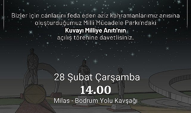 Milas Belediyesi, Milas Şehitleri ve Kuvayı Milliye Anıtı Projesi’ni tamamlayarak önemli bir çalışmaya imza attı. Vatanın bütünlüğünü sağlamak için canlarını feda eden aziz kahramanların anısına oluşturulan Milli Mücadele Parkı’ndaki Kuvayı Milliye Anıtı, Kültür ve Turizm Bakanlığı Güzel Sanatlar Eseri olarak tescilli anıtsal beş heykelden oluşacak.Milas halkının ecdadına saygı abidesi olarak tasarlanan Milas Şehitleri ve Kuvayı Milliye Anıtı, 28 Şubat Cumartesi günü saat 14.00’te gerçekleşecek tören ile açılacak.Kuvayı Milliye Anıtı; Ulu Önder Gazi Mustafa Kemal Atatürk başta olmak üzere, Milas Kuvayı Milliye Heyeti Üyesi ve Nazilli Murahhası Milas Müftüsü Mehmet Rüştü Efendi (Özer), Kuvayı Milliye Karargâh Komutanı Müftüzade Teğmen Osman Zeki Bey (Özer), Milas Milli Mücadele Dönemi kahramanları anısına iki temsili heykelin yanı sıra bir istiklal madalyası modelinden oluşmaktadır.MİLAS’IN TARİHİNE VE KÜLTÜRÜNE YAPILAN BÜYÜK DOKUNUŞMilas Bodrum Kavşağı’ndaki “Milli Mücadele Parkı” içerisinde yer alan Kuvayı Milliye Anıtı’nın açılışına tüm Milas halkını davet eden Milas Belediye Başkanı Muhammet Tokat, “Gururla sunduğumuz Milas Şehitleri ve Kuvayı Milliye Anıtı, anıtsal beş heykelden oluşan etkileyici bir yapıya sahip olacak. Bu büyük projemizi tamamlayarak ilçemizin tarihine ve kültürüne önemli bir katkıda bulunduk. Kültür ve Turizm Bakanlığı Güzel Sanatlar Eseri olarak tescillenen heykellerimizi tasarlayan ve üreten Alper Çınar Plastik Sanatlar Atölyesi sanatçılarına bir kez daha sonsuz teşekkür ve şükranlarımız sunuyorum.” dedi.Kaynak: (BYZHA) Beyaz Haber Ajansı