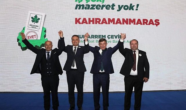 Davutoğlu'nun konuşmasının ardından Muharrem Çevik, Gelecek Partisi'nin Kahramanmaraş Onikişubat ilçesi için vaat ettikleri projeleri ve hedefleri paylaştı. Çevik, "Onikişubat halkımıza selam olsun. Bizleri destekleyen herkese teşekkür ederim ve seçimlerde rekor bir oy ile zaferimizi ilan edeceğimize olan inancım tamdır," ifadelerini kullandı.