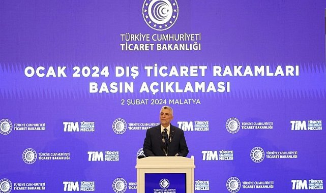 Ticaret Bakanı Ömer Bolat, "Ocakta ihracatımız geçen yılın aynı ayına göre yüzde 3,6 artarak 20 milyar 28 milyon dolar oldu. Tarihimizin en yüksek ocak ayı ihracat rekorunu kırdık." dedi.MALATYA (İGFA) - Ticaret Bakanı Ömer Bolat, Malatya'daki bir otelde ocak ayına ait dış ticaret rakamlarının açıklandığı toplantıda, 1 yıl önce "asrın felaketi" olarak kabul edilen büyük bir deprem yaşadıklarını, 11 ili kapsayan depremde 50 binden fazla vatandaşın hayatını kaybetmesinin üzüntüsü içerisinde olduklarını söyledi.