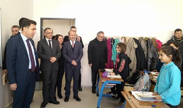 Bilecik'in Pazaryeri ilçesinde yapımı tamamlanan Şehit Zafer Koyuncu İmam Hatip Ortaokulu ile Atatürk Ortaokulu bugün açılırken ilk dersi öğrenciler Bilecik Valisi Şefik Aygöl, İlçe Kaymakamı Ahmed Tayyib Kahraman, Belediye Başkanı Zekiye Tekin ile birlikte yaptı.Pazaryeri Gündem / BİLECİK (İGFA) - Pazaryeri İlçesinde geçtiğimiz yıllarda deprem riskli olarak boşaltılan Atatürk Ortaokulu, eğitimine Şehit Zafer Koyuncu İmam Hatip Ortaokulunda devam ederken 2023 yılında ihalesi tamamlanıp 30 milyonluk yatırımla inşaat çalışması biten Atatürk Ortaokulu ve Şehit Zafer Koyuncu İmam Hatip Ortaokulu yeni yerinde 282 öğrencisiyle tekrardan eğitime açıldı."İLK DERSİ VALİ, KAYMAKAM, BELEDİYE BAŞKANIYLA YAPTILAR"Tamamlanan okullarda eğitim ve öğretimin 2. döneminde ilk ders zili çalarken Bilecik Valisi Şefik Aygöl yeni okullarda inceleme yapıp, öğrencilerle kitap okudu. Okullarda sınıfları dolaşan Vali Aygöl öğrenciler le sohbet edip başarılar diledi.Her iki okulda okul yöneticileri ve öğretmenler ile bir araya gelen Vali Aygöl öğretmenlerden gelen talepleri dinledi.Vali Aygöl'e Pazaryeri ilçesindeki ziyaretine Pazaryeri Kaymakamı Ahmed Tayyib Kahraman, Belediye Başkanı Zekiye Tekin, İl Milli Eğitim Müdürü Mustafa Sami Akyol ile İlçe Milli Eğitim Müdürü Mahmut Ekinci, İlçe Jandarma Komutanı Recep Kuş, İlçe Emniyet Amiri Emrah Turan eşlik etti.