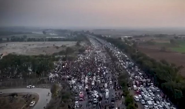 Pazar günü başlayan ve Pazartesi akşamı İslamabad'a ulaşan Han'ın eşi Bushra Bibi'nin öncülüğündeki protesto yürüyüşünde polis ve güvenlik güçleriyle çatışmalar yaşandı. Salı günü protestocular başkentteki birkaç stratejik binanın yakınındaki D-Chowk'a doğru yürüyüşlerine devam ettiler ve burada toplanmayı planlıyorlar.Yerel medya haberlerine göre, bir polis memuru ölümcül şekilde vuruldu ve hava indirme birliğine mensup dört paraşütçü protestocular tarafından ezildi. Pakistan Tehreek-e-Insaf (PTI) partisinin taraftarları başkente doğru ilerlerken şehirde artan gerginlik, bir dizi şiddet, polise yönelik saldırılar ve araçların yakılmasıyla birlikte düzinelerce kişi yaralandı.PTI lideri İmran Han, Pazar gününden itibaren ülke çapında protestolar için "son çağrıyı" yaptı ve "çalınmış bir yetki" olarak nitelendirdiği durumu reddetti. Parti, halkı "köleliğin zincirlerini kırmak" için gösterilere katılmaya çağırdı. Hayber-Pahtunhva Başbakanı Ali Amin Gandapur ve Bushra Bibi liderliğindeki protestocular, Pazar günü İslamabad'a doğru yürüyüşlerine başladı.Hükümet, nakliye konteynerleri, beton bariyerler ve barikatlar kullanarak otoyolları kapattı. Ancak protestocular engelleri kaldırmak için kaldırma ekipmanları ve ağır makineler kullanarak ulusal başkente doğru ilerledi ve şiddetli çatışmalara yol açtı.İl polis şefi Usman Anwar, İslamabad yakınlarında ve Pencap eyaletinde çıkan çatışmalarda bir polis memurunun vurularak öldürüldüğünü, en az 119 kişinin yaralandığını ve 22 polis aracının ateşe verildiğini doğruladı. İki memurun durumu kritik. Imran Khan'ın destekçileri arasında da yaralar olduğunu iddia etti.Güvenlik güçleri, Pakistan yayın kuruluşu Geo TV'ye, bazı suçluların araçlarını Srinagar Otoyolu'nda korucuların üzerinden sürdüğünü, dördünü öldürdüğünü ve beşini de yaraladığını söyledi.Raporlara göre, hükümet PTI'yi protestosunu sonlandırmaya veya protestoyu şehirden uzakta bir mekanda düzenlemeye ikna etmeye çalıştı. Ancak, Bushra Bibi teklifi reddetti ve ilerlemekte ısrar etti.Hükümet, Pakistan İçişleri Bakanı Mohsin Naqvi'nin eski iktidar partisini yüksek güvenlikli bölgeye girmeleri halinde ciddi "sonuçlar" konusunda uyarmasıyla katı önlemler planlıyor.İmran Khan, hükümeti 2022'de güvensizlik oyu ile görevden alındığından beri çok sayıda davada adı geçti. Partisine göre 200'den fazla davayla karşı karşıya olan Khan, geçen yıldan beri Rawalpindi'deki Adiala Hapishanesi'nde. Bazı partililer kefaletle serbest bırakıldı, bazılarında ise mahkum edildi ve ek davalar için duruşmalar devam ediyor.Khan'ın partisi, seçim sembolü verilmemesinin ardından bağımsız olarak yarışmasına rağmen Şubat ayında yapılan genel seçimlerde en fazla sandalyeyi elde etti. PTI lideri, iktidardaki Pakistan Müslüman Ligi-Nawaz (PML-N) ve Pakistan Halk Partisi (PPP) dahil koalisyon ortaklarının federal düzeyde iktidarı ele geçirmek için “yetkiyi çaldıklarını” iddia etti.