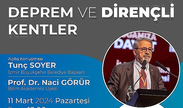 İzmir Büyükşehir Belediye Başkanı Tunç Soyer’in “Afetlere Hazır ve Dirençli İzmir” vizyonu çerçevesinde düzenlenen ortak akıl buluşmaları devam ediyor. Bilim Akademisi Üyesi Prof. Dr. Naci Görür’ün katılacağı “Deprem ve Dirençli Kentler” konferansı 11 Mart’ta yapılacak.İzmir Büyükşehir Belediye Başkanı Tunç Soyer’in “Afetlere Hazır ve Dirençli İzmir” vizyonu doğrultusunda ortak akıl ile yürütülen toplantı ve buluşmalar “Deprem ve Dirençli Kentler” konferansı ile devam ediyor. 11 Mart 2024 Pazartesi günü saat 13.00’da Ahmed Adnan Saygun Sanat Merkezi’nde (AASSM) düzenlenecek konferansa Bilim Akademisi Üyesi Prof. Dr. Naci Görür katılacak. Ev sahibi İzmir Büyükşehir Belediye Başkanı Soyer’in de konuşmacı olarak yer alacağı konferansta Prof. Dr. Naci Görür deprem ve dirençli kentler başlığı altında önemli bilgiler verecek.İzmir’de 30 Ekim 2020 tarihinde yaşanan deprem sonrası İzmir Büyükşehir Belediyesi’nin öz kaynaklarını kullanarak yürüttüğü afet risk azaltma çalışmaları devam ederken diğer yandan kent genelinde sürdürülebilir yaşam alanları doğrultusunda kamulaştırma ve kentsel dönüşüm faaliyetleri yürütülüyor.Kaynak: (BYZHA) Beyaz Haber Ajansı