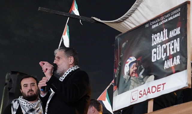 Saadet Partisi Bursa İl Başkanlığı tarafından, uluslararası sularda seyreden “Özgürlük Filosu”na yapılan saldırı düzenlenen nöbette protesto edildi. Saadet Partisi Bursa İl Başkanı Gürsel, toplanan kalabalığa hitaben yaptığı konuşmada, saldırının sadece denizde işlenen bir suç olmadığını, insanlığın vicdanına karşı işlendiğini söyledi.Gürsel, İsrail’in 1948’den bu yana süren işgal politikalarına dikkat çekerek, “Bu tablo sadece Filistin halkına değil, tüm insanlığın vicdanına karşı işlenmiş bir suçtur” dedi. Gürsel, saldırıda alıkonulan 92 kişinin, Türkiye Cumhuriyeti’nin itibarına meydan okuduğunu ifade etti.Konuşmasında artık sembolik açıklamaların yeterli olmadığını belirten Gürsel, “Tam tecrit, tam ambargo, tam yaptırım, sıfır ilişki” çağrısı yaptı.. Gürsel, uluslararası toplumun sessizliğine tepki göstererek, Türkiye Cumhuriyeti Hükûmeti’ni diplomatik ve ekonomik adımlar atmaya çağırdı.Nöbet, Hamza Gürsel’in konuşması ve katılımcıların Filistin lehine sloganlarıyla sona erdi. Saadet Partisi, tüm siyasi partileri ve sivil toplum kuruluşlarını zulme karşı ses yükseltmeye davet etti.