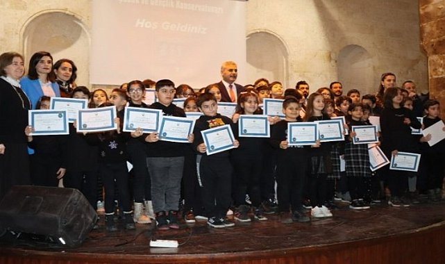 Şanlıurfa Büyükşehir Belediyesi Çocuk ve Gençlik Konservatuvarında müzik eğitimi alan minik öğrenciler, 2023-2024 Güz Dönemi yarıyılını düzenledikleri muhteşem konser ile kutladı. Çocuk ve Gençlik Konservatuvarı Güz Dönemi