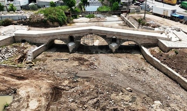Mimar Sinan'ın 16'ncı yüzyılda yaptığı, 3 kemerli ve 65 metre uzunluğundaki taş köprünün geçtiğimiz yıl başlayan restorasyon çalışmalarında sona gelindi.KOCAELİ (İGFA) - Dilovası Belediye Başkanı Hamza Şayir; Dilovası'nda tarihi eser ve mekanların ihyasının devam ettiğine dikkati çekerek, "Geçtiğimiz yıl Kültür Varlıklarını Koruma Bölge Kurulu tarafından projesi hazırlanan ve restore çalışması başlatılan bu muhteşem köprünün çalışmalarında sona gelindi" dedi.600 YILLIK TARİHE SAHİPDilovası'nın tarihinde önemli bir yeri olan Mimar Sinan Köprüsü'nün 600 yıllık bir geçmişe olduğuna vurgu yapan Başkan Şayir "Köprü adeta Dilovası'nın simgesidir. Kanuni Sultan Süleyman tarafından Mimar Sinan'a yaptırılmış, 65 m uzunluğundaki taş köprü, üç kemerlidir. Dilderesi üzerinde bulunan ancak sanayinin arasına sıkışmış vaziyette bulunan tarihi köprümüz geçtiğimiz yıl Kültür Varlıkları Koruma Müdürlüğü ile yapılan görüşmelerin ardından aslına uygun hazırlanan projesiyle birlikte restorasyon çalışmalarına başlanmıştı. Geçen süre içerisinde titizlikle yürütülen restore çalışmalarında sona gelindiğini görmekteyiz. İnşallah kısa sürede çalışmalar tamamlanacak ve Dilovamız önemli bir mirasına kavuşmuş olacaktır" dedi.