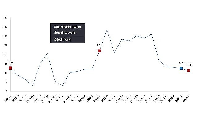 Sabit fiyatlarla perakende satış hacmi (2015=100) 2023 yılı Aralık ayında bir önceki yılın aynı ayına göre %11,4 arttı. Aynı ayda gıda, içecek ve tütün satışları %8,7 arttı, gıda dışı satışlar (otomotiv yakıtı hariç) %16,9 arttı, otomotiv yakıtı satışları ise %5,1 azaldı.Perakende satış hacmi aylık %1,7 arttı