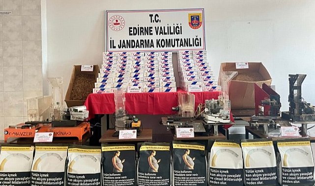 Edirne İl Jandarma Komutanlığı, Uzunköprü ilçesinde kaçak sigara üretiminin engellenmesine yönelik operasyon düzenledi.