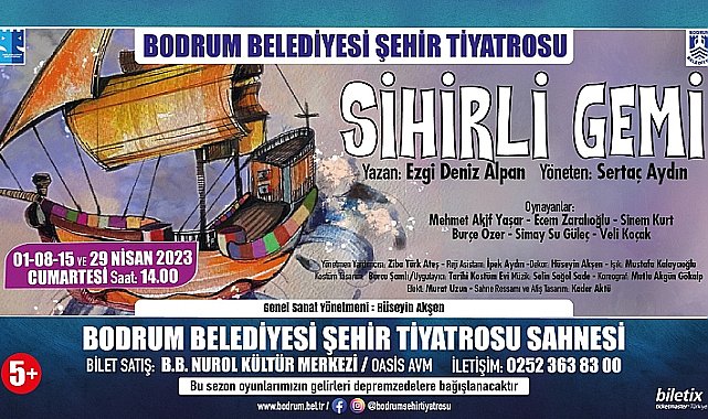 Oyunun yönetmeni Sertaç Aydın ise duygularını, “İlk kez bir çocuk oyununun yönetmenliğini yapmak beni oldukça heyecanlı, keyifli ve sihirli bir yolculuğa sürükledi. Sihirli yolculuğumuzun bu kadar keyifli olmasını sağlayan, bana inanıp destekleyen ekip arkadaşlarımın her birine tüm kalbimle teşekkür ederim.” dedi.Başkan Aras “İklim krizine karşı mücadele önceliğimiz”Bodrum Belediye Başkanı Ahmet Aras, bütün dünyanın başlıca sorunu olan iklim krizi ve ona yol açan ekolojik sorunları bir çocuk oyunu ile dile getiren Bodrum Belediyesi Şehir Tiyatrosu ekibine teşekkür ederken, “Biliyoruz ki çocuklar bizim geleciğimiz. Onların çevreye, ekolojiye karşı bilinçlendirilmesi önceliğimiz olmalı. Bodrum Belediyesi olarak bir taraftan önemli iklim çalışmaları gerçekleştirirken bir taraftan da çocuklarımıza tiyatronun öğretici yönüyle önemli mesajlar vereceğiz. Katkı koyan herkese teşekkür ediyorum.” dedi. SİHİRLİ GEMİYazan: Ezgi Deniz Alpan