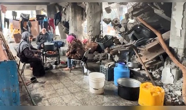 CCTV'nin, Birleşmiş Milletler Yardım ve Çalışma Ajansı'na (UNRWA) dayandırdığı haberine göre 31 Ocak itibariyle Gazze Şeridi genelinde nüfusun yüzde 75'inden fazlasını oluşturan 1.7 milyon kişi yerinden edilmiş durumda.UNRWA daha önce yaptığı bir açıklamada, Gazze'deki binaların yüzde 60'ından fazlasının İsrail bombardımanı nedeniyle hasar gördüğünün öngördüğünü belirtmişti.Gazze'nin kuzeyindeki Jabalia mülteci kampında bulunan Filistin BM İlkokulu'nun yıkılmış duvarları arasında, Filistinli aileler güvenli barınak seçenekleri tükendiği için hasarlı ya da yıkılmış binalara sığınıyor. Okul geçen birkaç hafta boyunca İsrail'in ağır bombardımanı altındaydı. İsrail ordusunun çekilmesinin ardından aileler okula akın etti ve burayı yeni evleri haline getirdi.İsrail'in sürdürdüğü bombardımanlar nedeniyle, Gazze'de yaşayan Filistinliler'in barınma seçenekleri giderek azalıyor. Sağlam okullar dolu, çadırlar onları yağmurdan koruyacak kadar güçlü değil ve kısmen yıkılmış bu binalar son seçenek.Yerinden edilmiş bir Filistinli olan Safwat Shabat, CCTV'ye, "Kuzeydeki altı katlı evimiz bombalandı ve 42 kişi enkaz altında ölü yatıyor. Onlara ulaşmamız mümkün olmadı. Önce Han Yunus kentine göç ettirildik, ardından İsrail tankları saldırınca Refah kentine kaçtık. Kendimize enkaz altından başka sığınak bulamadık. Burası çok güvensiz bir yer ama başka seçeneğimiz yok." dedi.