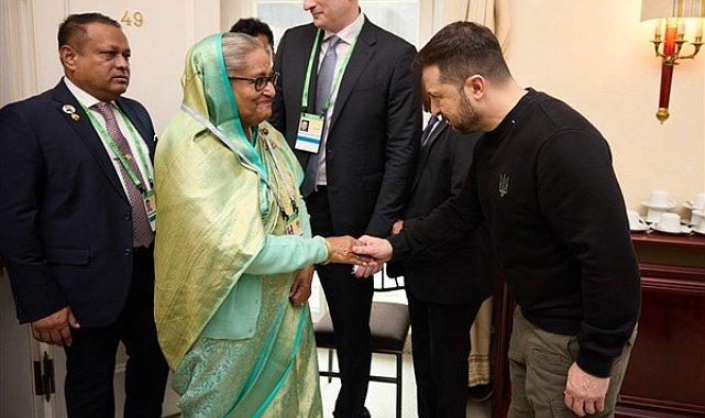 Zelenski, Bangladeş Başbakanı Şeyh Hasina Vecid ile görüşerek Ukrayna'nın egemenliğine ve toprak bütünlüğüne verdiği destekten dolayı teşekkür etti.Görüşmede Ukrayna'nın Barış Formülüne dayalı adil bir barış vizyonunu, ticari ve ekonomik iş birliğini konuştuklarını belirten Zelenski, "Bangladeş'i Formülün uygulanmasına ve ilk Küresel Barış Zirvesi'ne katılmaya davet ettim." dedi.